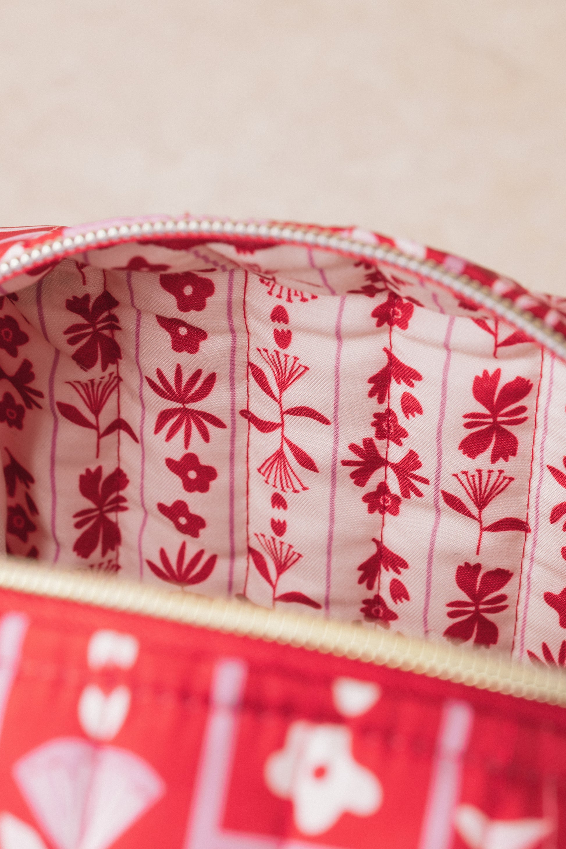 ジッパーの開口部分が広くて開けやすいポーチは、開けると中に何が入っているか一目瞭然。見た目の割りに大容量なので、旅行時にも活躍すること間違いなし。フランスの地方によくあるバスルームのタイルからインスピレーションを受けたレトロなヴィンテージ調のフラワーパターンが乙女心をくすぐります。